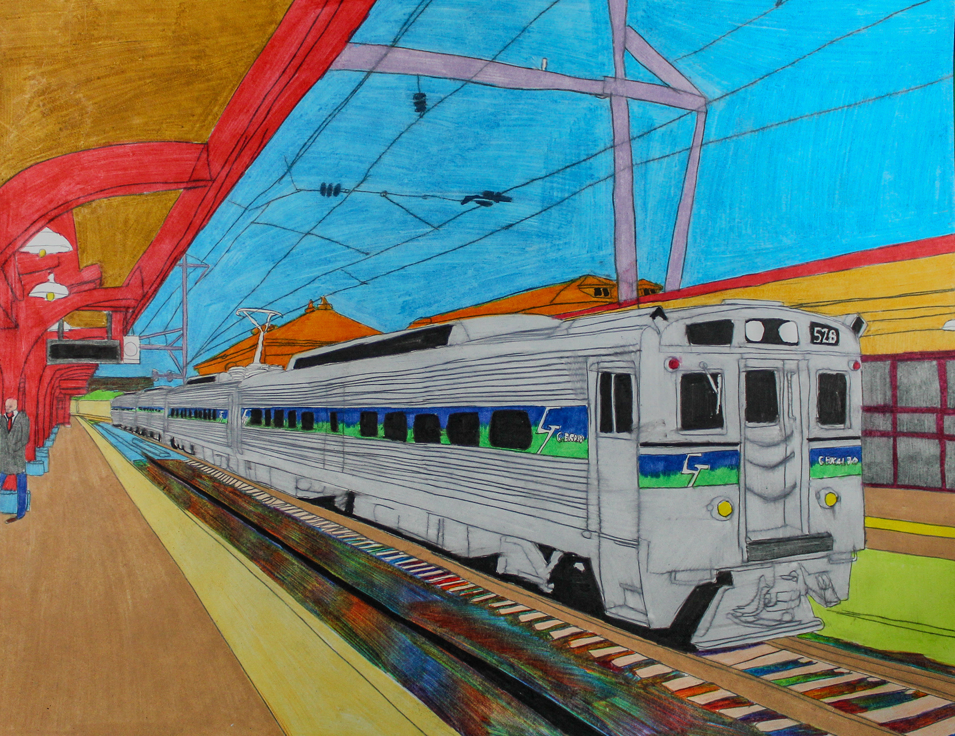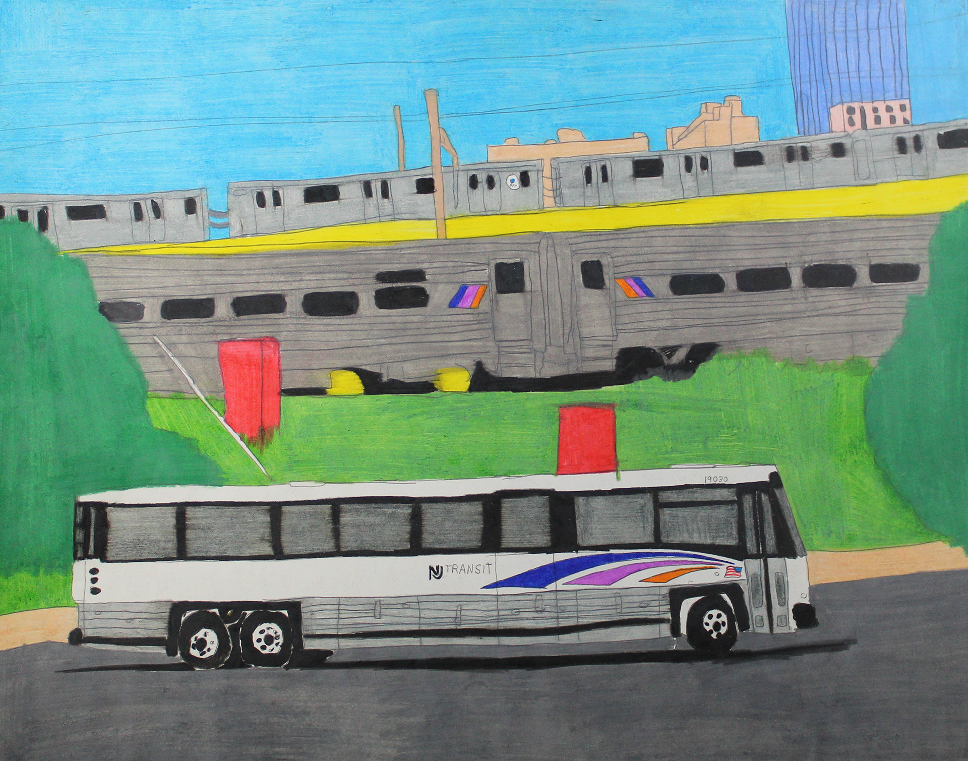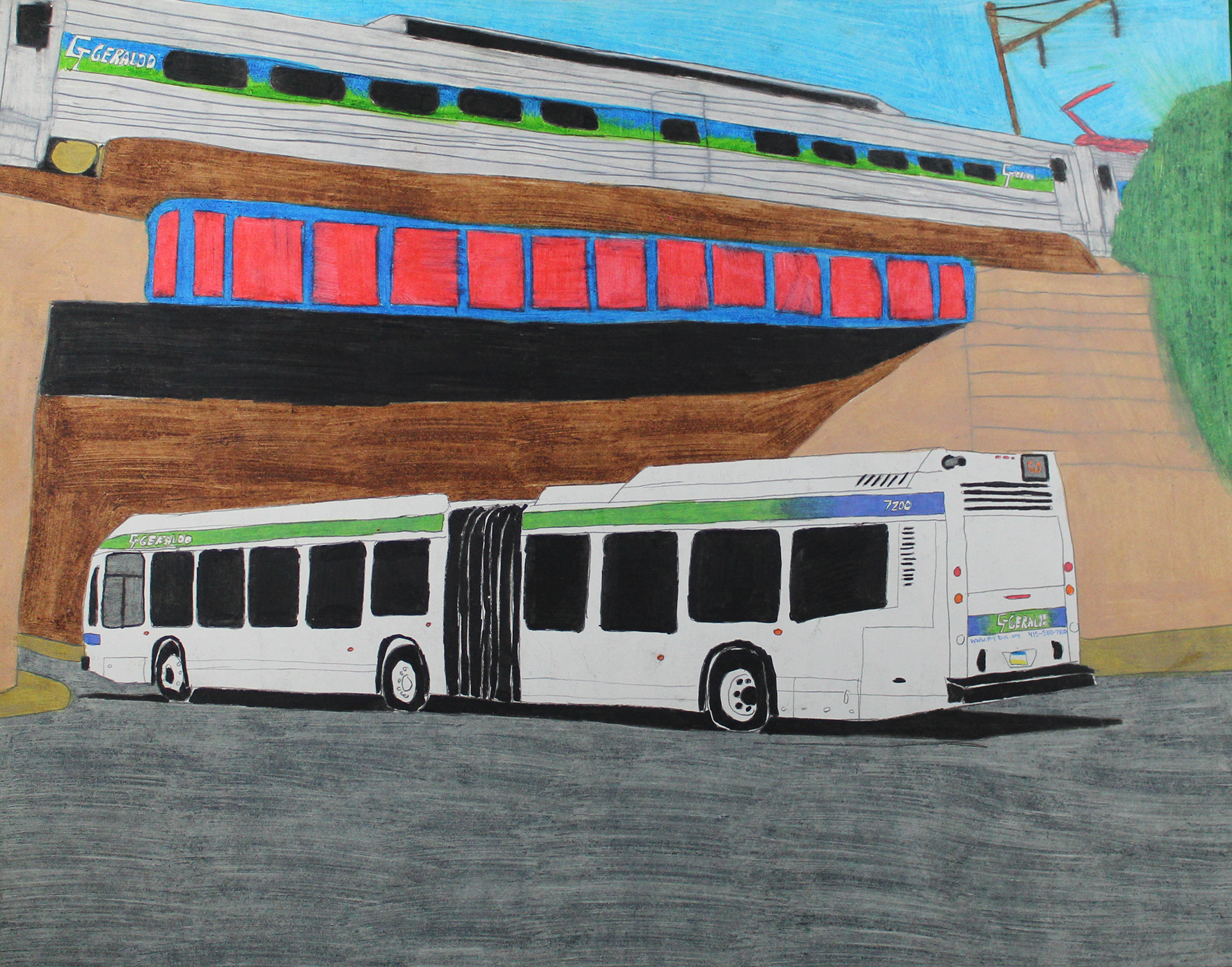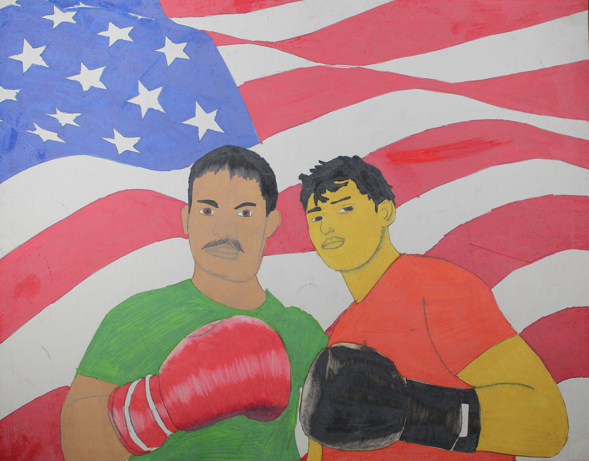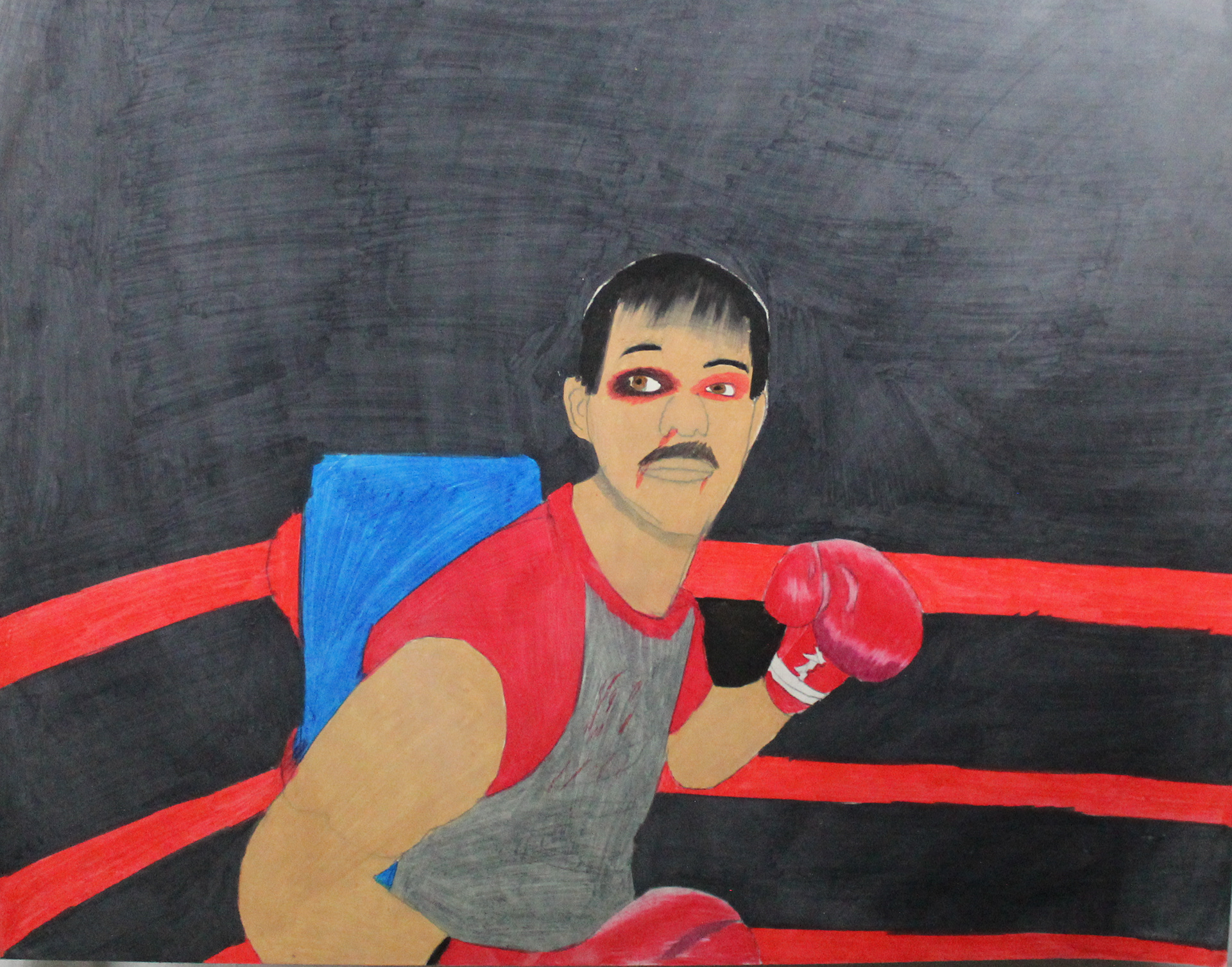 A Collection of my Artwork of Public Transportation, Puerto Rico, Boxing in Color pencils and self-portrait paintings