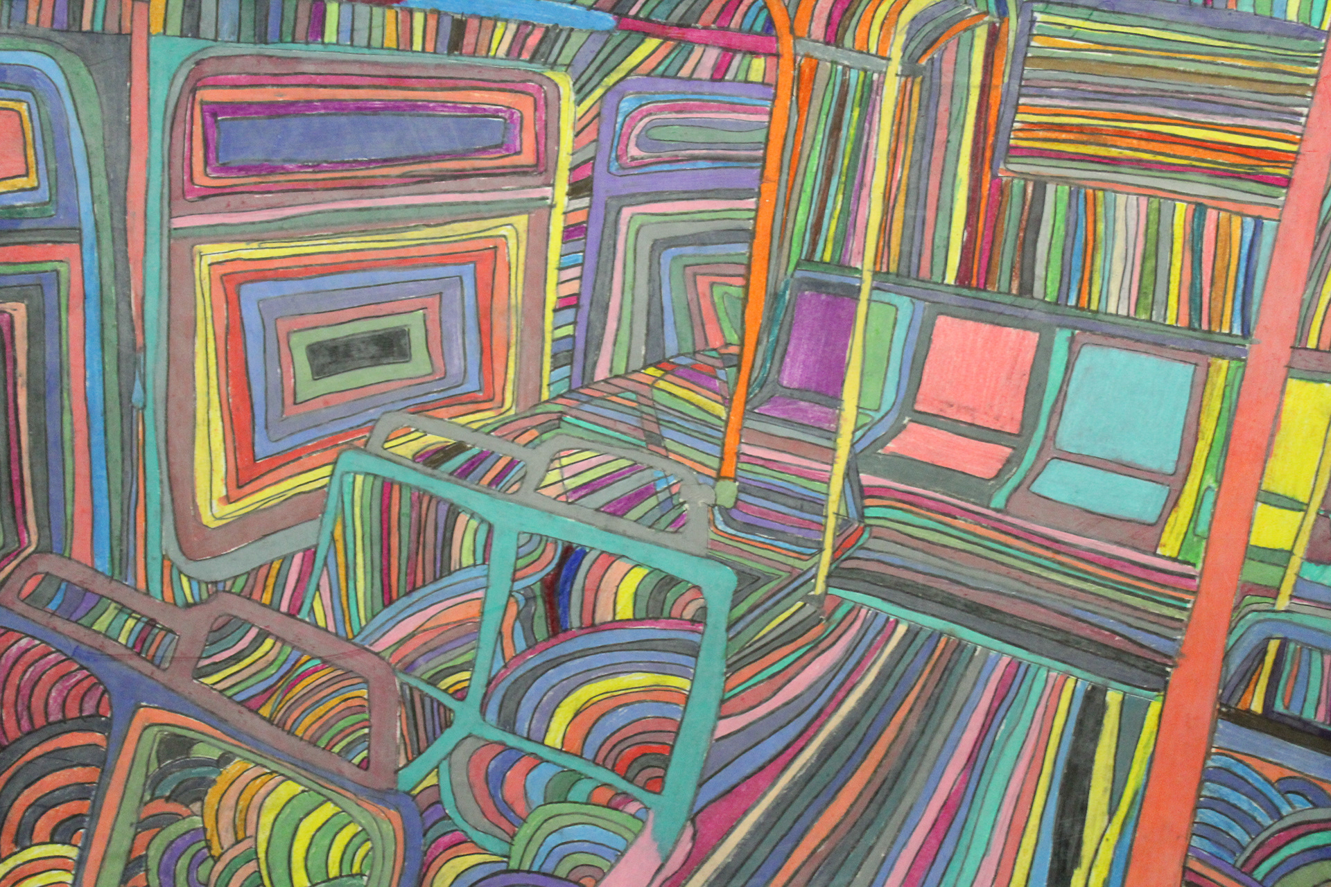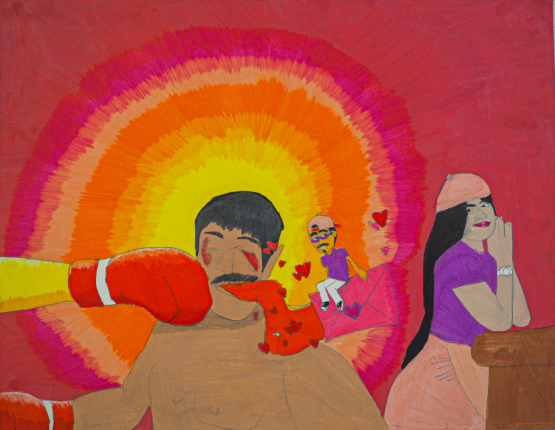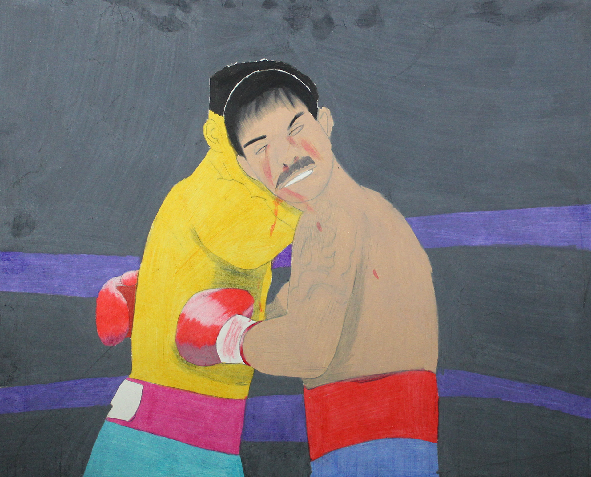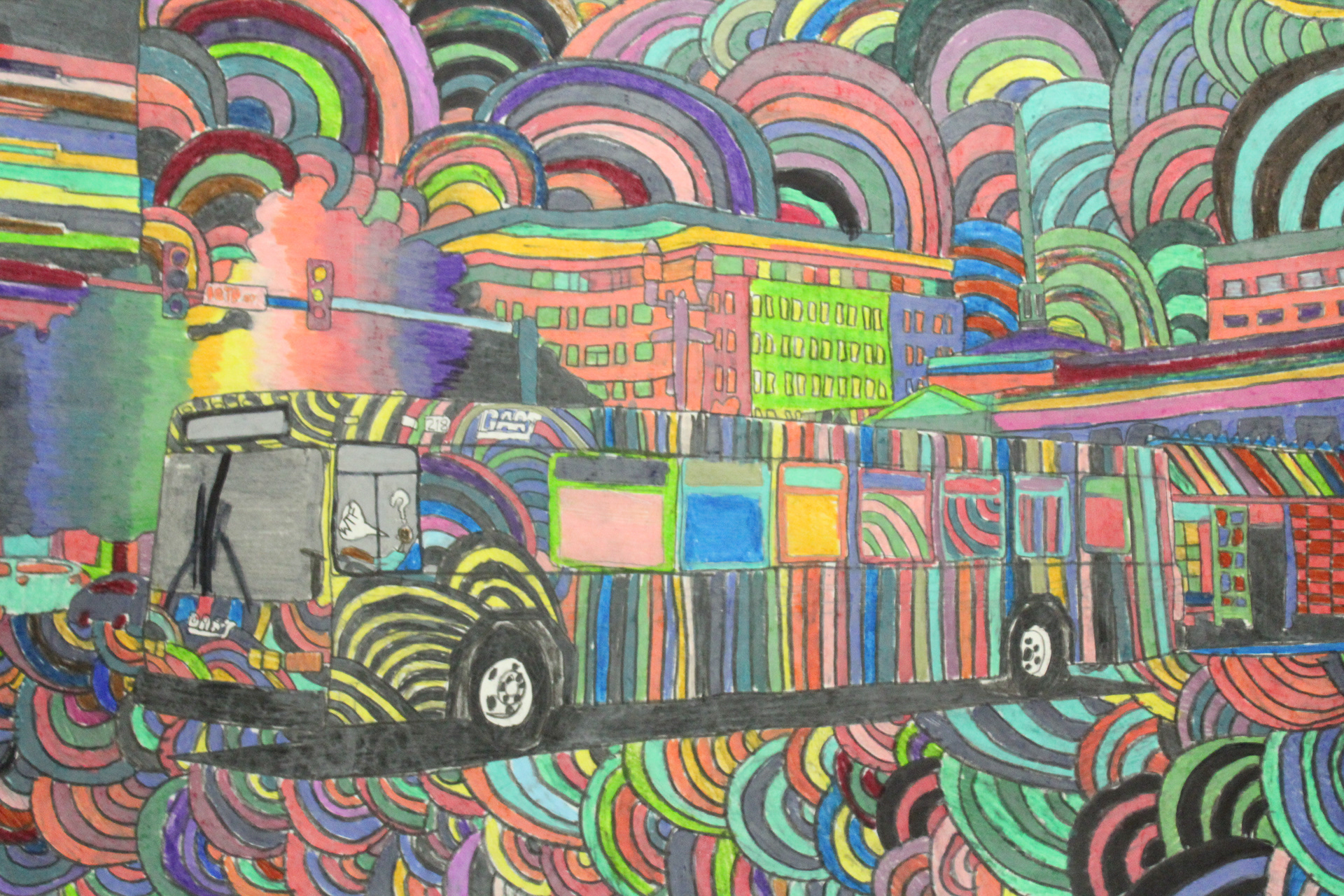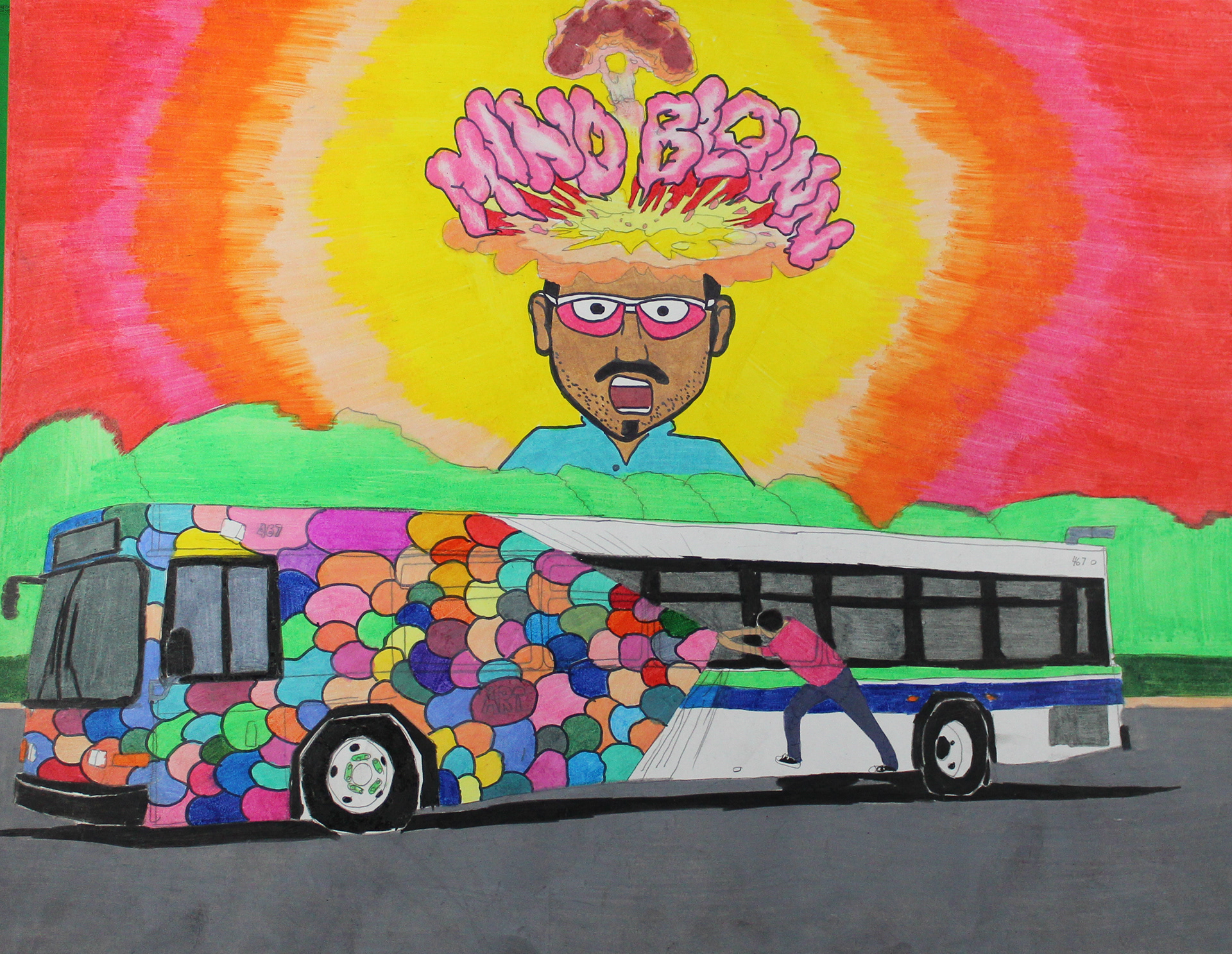 A Collection of my Artwork of Public Transportation, Puerto Rico, Boxing in Color pencils and self-portrait paintings